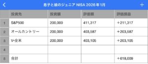 息子と娘はジュニアNISAをしています。2022年8月から始めました。3年と5ヶ月になります。購入資金は60万円で、それぞれ子どもの通帳から引き出しました。