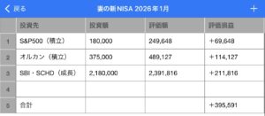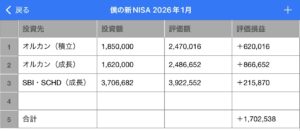 銘柄は、オルカンに15,000円です。そして成長投資枠で、SBI・SCHDを購入しました。